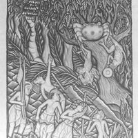 Monkeys up a tree with rooster and gong