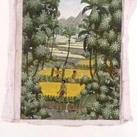 3525-46 Woman carrying her child by a river with deer