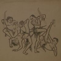 B135-015 Witches (leak) dance of two Sissias (disciples) of the witch Rangda
