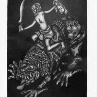 Change text no to TEXT B619\n\nPictures\tB642\n\t\tB627\n\t\tB619\n\t\tB620\n\t\tB621\n\nText 111(A)\tSept 13, 1936\nKatoetoeran satoewa Peraboe Gadjah Daroema (Lawe)\n\n(IBTogog narrated, MK wrote afterwards)\n\n1. There was a Peraboe named Peraboe Gadjah Daroema. He had four patih. Each one lived in a quadrant of the desa (nyatur desa - e.g N,S,W,E.) The four patih were trusted very much by Ida Sang Peraboe, and he gave them a letter (soerat penoegerahan) saying that they were not allowed to move away from their posts at the boundaries of the country, no matter how important the reason might be.\n\n6. Then the Sang Peraboe became sick and died. (néwata) His son took his place, named Anak Agoeng Anom. He sent letters to the four patih to come to see hm (tankil ke Negara). The patihs were still loyal (bakti) to the deceased Anak Agoeng and also loyal to Anak Agoeng Anom. What could they do?\n\n11. So then each of the pepatih decided. (in familiar words) Well, now I'll cut my head off, and send it to Ida Sang Peraboe.\n\n13. So he did it and sent his head to Ida Sang Peraboe.\n\n15. Now, about Peraboe Lawe.(lawe - Zoet: trunk without a head) For a long time he had wanted to attack the country of Praboe Gadjah Droema, but as long as the four pepatih still lived he didn't dare attack. Now that the pepatih were dead he commanded his troops to strike against Oesinara, which was the name of the country of Peraboe Gadjah Deroeman. All the troops of Praboe Lawe rode on the backs of animals (boeron) and went to attack. Peraboe Gadjah Deroema lost. (note by GB: Anom is now Gadjah Deroema)\n\n87. The soldier (pandjak) of Peraboe Lawe riding a dog (tjitjing -or wolf?) being killed by soldiers of Oesinara.\n\n88. The soldier of Lawe riding on a crocodile (boeaja) killing a soldier of Oesinara riding on a horse.(djaran)\n\n89. Peraboe Lawe riding (ngelingihin) on a barong sabrang (note by GB: MK said it looks like a keket or matjan in gambuh.)\n\n90. Soldier of Paraboe Lawe riding on a boar.(tjeleng)\n\n91. Soldier of Praboe Lawe riding on a lion (singa) beheading (moenggal) a soldier from Oesinara.\n\n97. Soldier of Praboe Lawe fighting against a soldier of Oesinara, both riding on horses.\n\n98. Peraboe Lawe riding on Barong Sabrang.\n\n111A\t\t-2-\n\nThis text probably belongs to the following set of pictures by IBTogog:\n\nB642\t=\t(87)\nB627\t-\t(88)\nB619\t=\t(89)\nB620\t-\t(90)\nB621\t=\t(91)\n\nPictures B 622, B628 and B625 may belong to the same series, since they were bought about the same time, but do not fit the description of numbers 97 and 98, above.\n\nNote: the comment by MK that the Barong Sabrang resembles a keket or matjan in the gambuh may mean that this is a gambuh story. But then MK could have been wrong. This set of pictures was bought, and the story dictated early in GB's research period, while they were still living in Bayung.