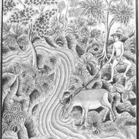 B135-001 Eclipse of the Moon; the demon Kala Rahu tries to devour the moon