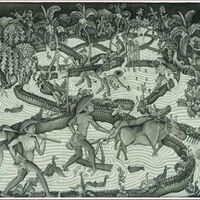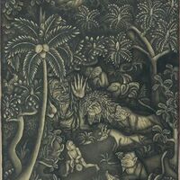 3525-18 Battle of the lion and bull from Tantri Kamandaka