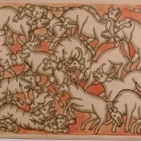 Still painting in the 1950s. Pioneered the style of depicting multiple animals.